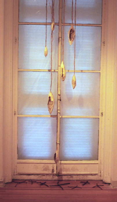 string, latex, gesso, paper, oil, twigs 2001
